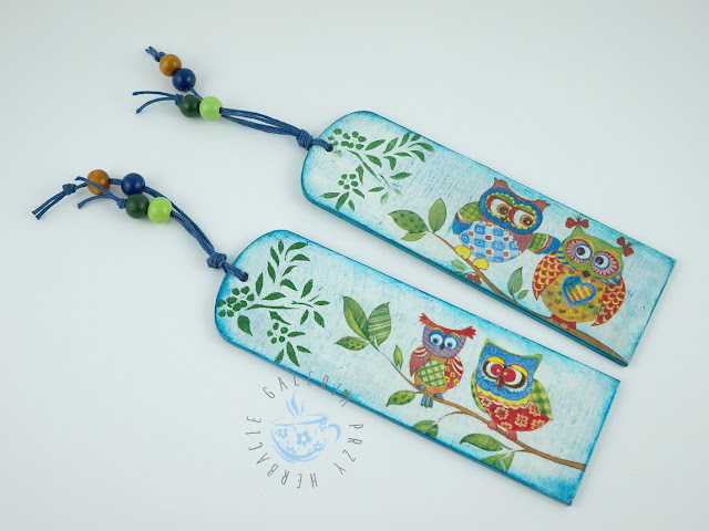 Zakładka do książki z sowami, dwustronna - jak na zdjęciu.